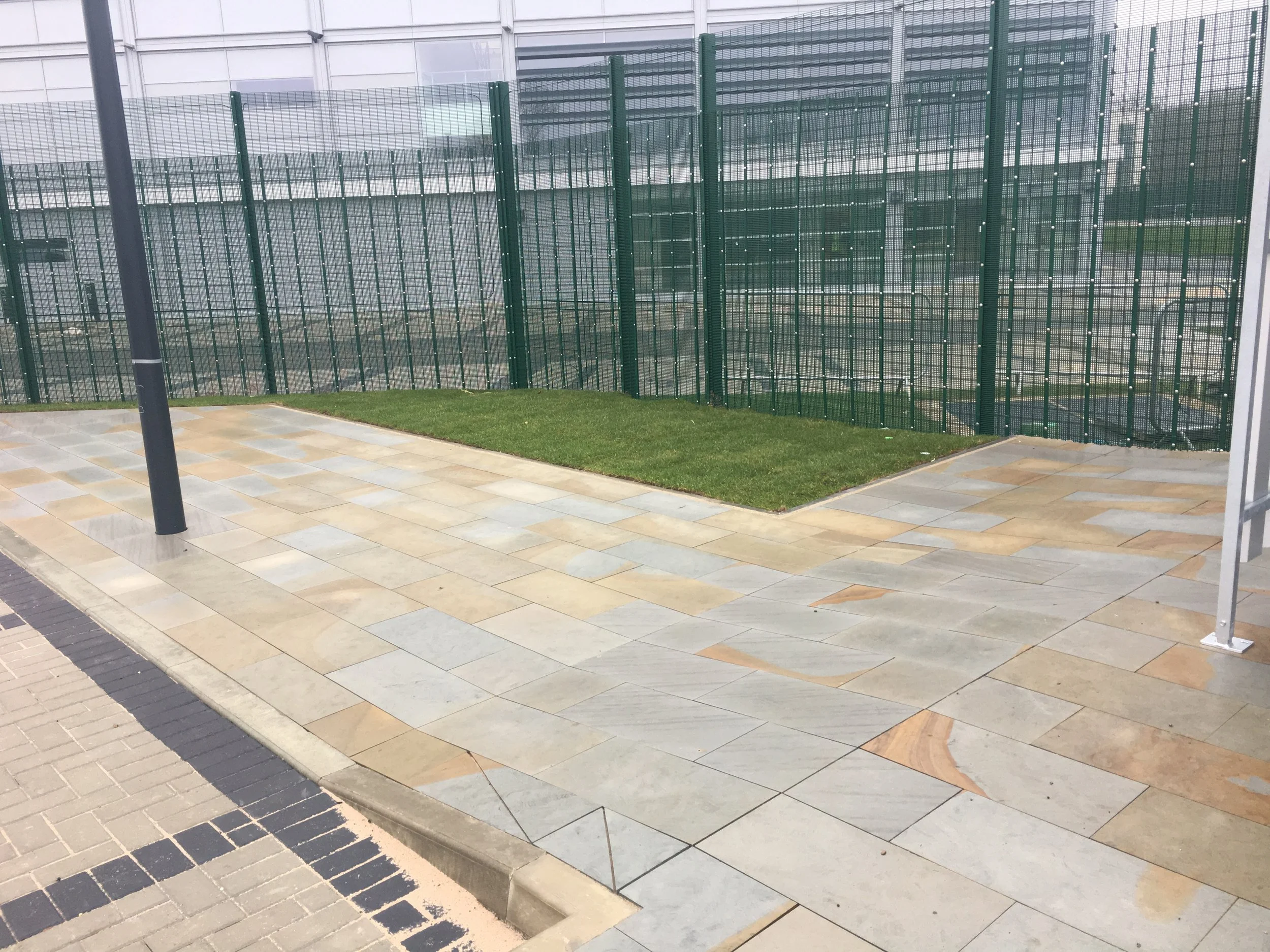The slabs are usually laid on either sand or sand/cement bed haunch which has been screeded to the desired levels.